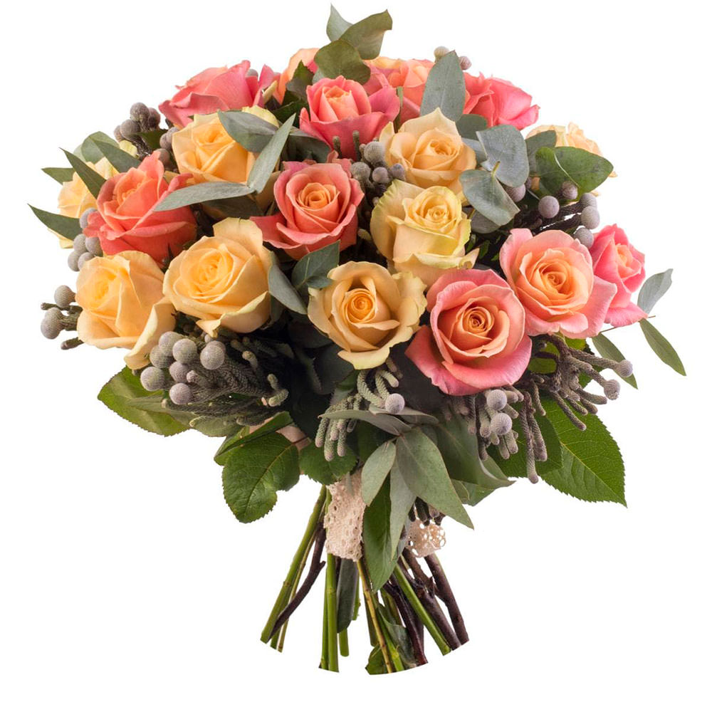 Роза одноголовая микс, бруния, эвкалипт.